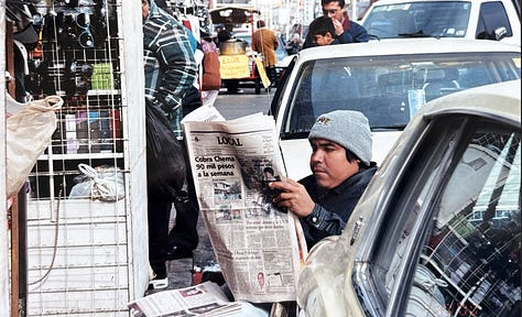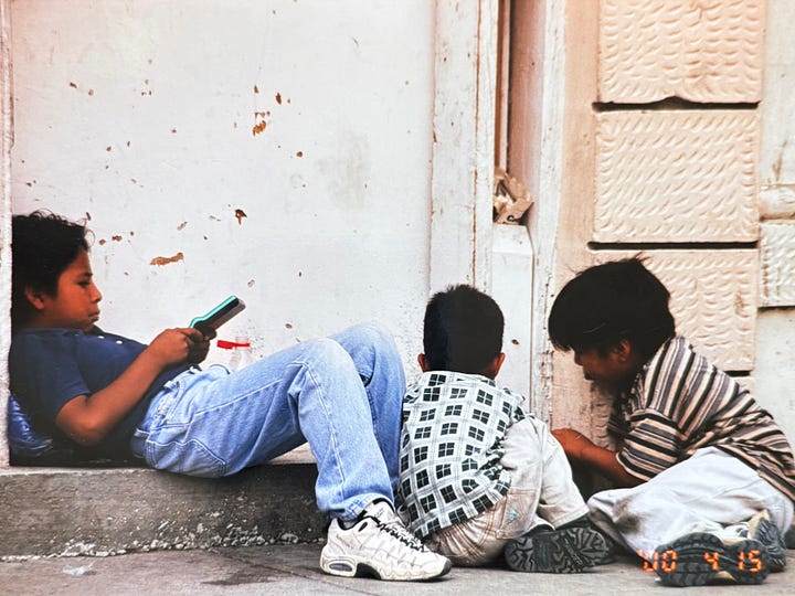 There would have been children darting in between cars on the Mexican side, selling chicles. Old women wrapped in threadbare rebozos on the side of the road begging for pesos. Men selling newspapers or flowers or reindeer figures made from dried river reeds.